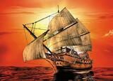 Алмазная вышивка «Парусник на фоне красного заката» 30x40 см